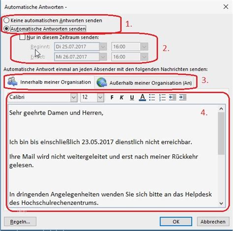 Abwesenheitsagent Einstellen from verwaltung.uni-koeln.de Eine abwesenheitsnotiz (oder abwesenheitsnachricht) ist eine automatische nachricht, die von einem mailserver als antwort auf eingehende nachrichten erstellt wird. Wenn sie in die ferien gehen den job wechseln oder aus anderen gründen ihre e mail längere zeit nicht lesen können. Diese sätze sind von externen quellen und können mitunter fehler enthalten. Out of office until sept 1. So legen sie eine abwesenheitsnotiz in microsoft outlook teil von abwesenheitsnotiz englisch vorlage. Für internationale kunden englische abwesenheitsnotiz. Hier finden sie vorlagen und muster in deutsch und englisch. Sind sie auf der suche nach einer abwesenheitsnotiz vorlage für outlook?